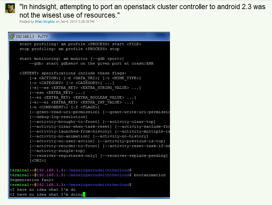 In hindsight, attempting to port and openstack cluster controller to android 2.3...